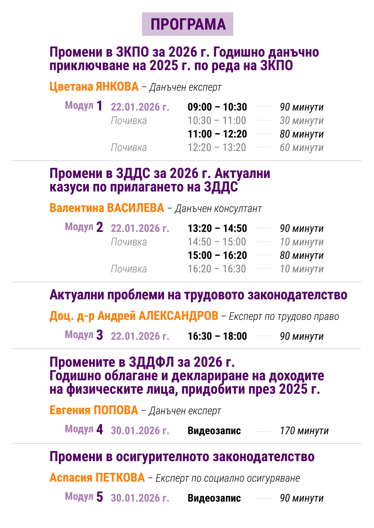 СЕМИНАРИ: Годишен счетоводен семинар - 22 януари 2026 г. (участие на място и пълен видеозапис)